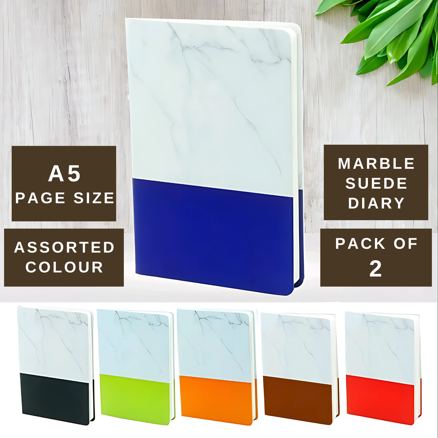 KARBD Marble Suede Notebook Single Line Diary (A5, 160 Pages, Pack of 2, Colour may vary)